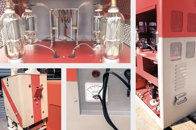 Heavy duty electronic tubes power this large model and deliver a large amount of high frequency current to the glue line.